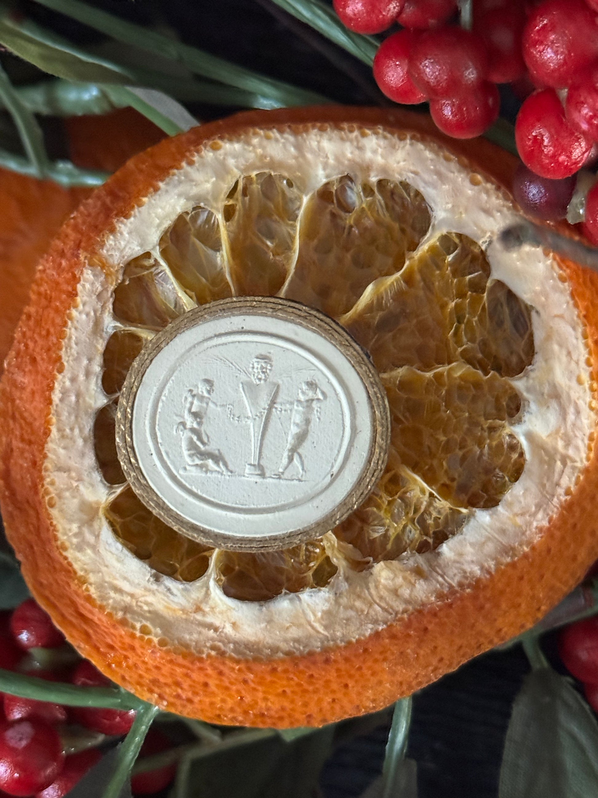 Grant Tour Intaglio depicting two cherubs surrounding a bust on a pedestal. 1”
